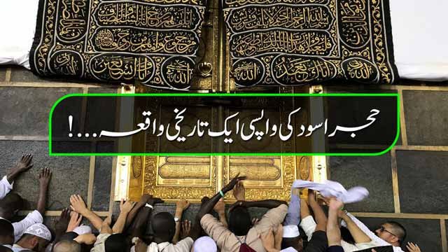 اناللہ واناالیہ راجعون یہ اسلام میں پہلا ایسا موقع تھا کہ حج بیت اللہ موقوف ہو گیا، اسی ابوطاہر قرمطی نے حجر اسود کو بیت اللہ سے نکالا اور اپنے ساتھ بحرین لے گیا- پھر بنو عباس کے خلیفہ مقتدر باللہ نے ابو طاہر کے ساتھ معاہدہ کر فیصلہ کیا اور تیس ہزار دینار دیے اور حجر اسود خانہ کعبہ کو واپس کیا گیا- یہ واپسی 339ھ کو ہوئی، گویا کہ بائیس سال تک خانہ کعبہ حجر اسود سے خالی رہا، جب فیصلہ ہوا کہ حجر اسود کو واپس کیا جائے گا تو اس سلسلہ میں خلیفہ وقت نے ایک بڑے عالم محدث عبداللہ کو حجر أسود کی وصولی کے لئے ایک وفد کے ساتھ بحرین بھجوایا- یہ واقعہ علامہ سیوطی کی روایت سے اس طرح نقل کیا گیا ہے کہ جب شیخ عبداللہ بحرین پہنچے تو بحرین کے حاکم نے ایک تقریب کا اہتمام کیا جہاں حجر اسود کو ان کے حوالہ کیا جائے گا- اب انہوں نے ایک پتھر جو خوشبودار ہیں، خوبصورت غلاف سے نکالا گیا کہ یہ حجر اسود ہے اسے لے جائیں- محدث عبد اللہ نے فرمایا کہ نہیں بلکہ حجر اسود میں دو نشانیاں ہیں اگر اس میں یہ نشانیاں پائی جائیں تو یہ حجر اسود ہوگا ورنہ نہیں!